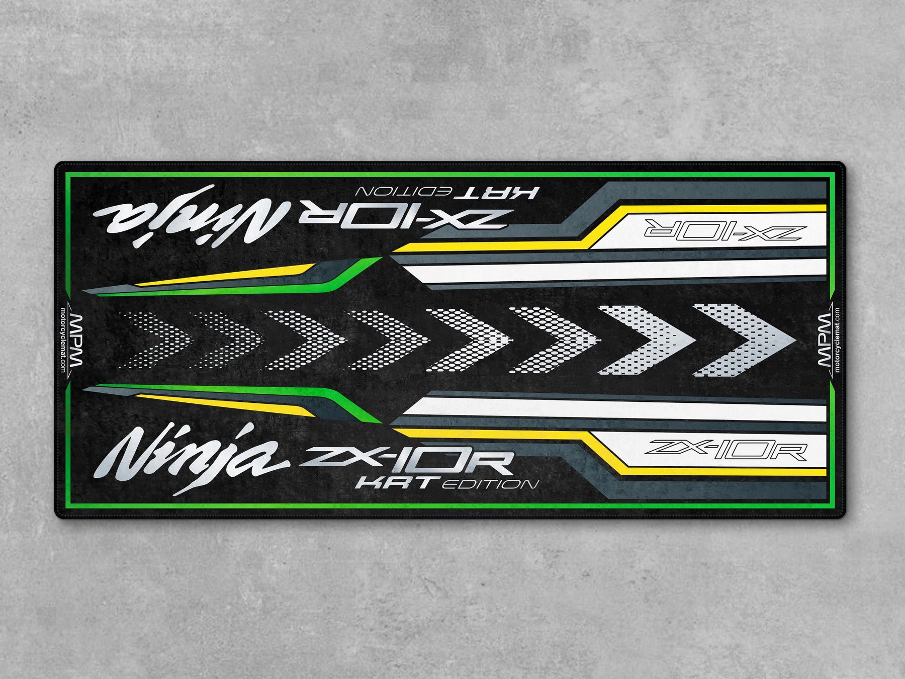 ZX-10R KRT Edition garaj halısı, motosiklet park paspası ve zemin koruyucu aksesuar olarak üretildi