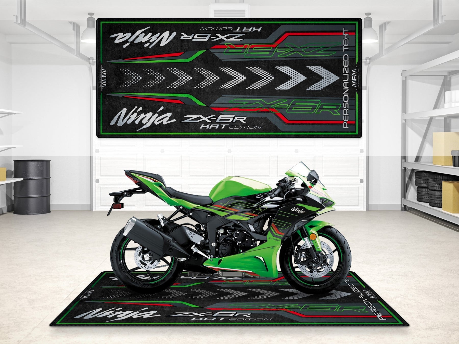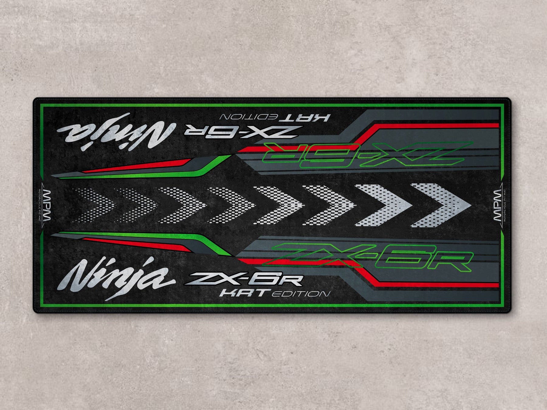 ZX-6R Ninja KRT Edition garaj halısı, park matı ve zemin koruyucu olarak şık motosiklet paspası